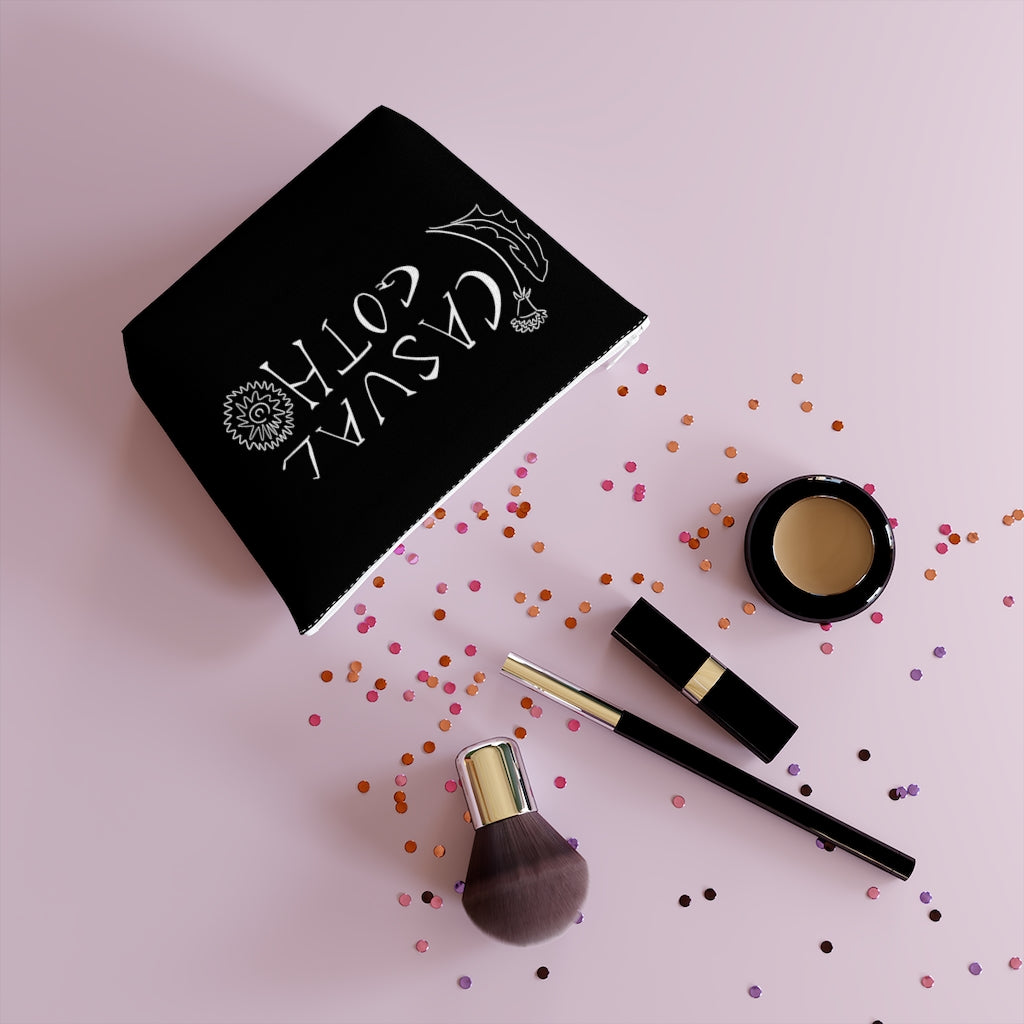 In your haste, you realize you had failed to apply your tempting rouge! Made with 100% drill cotton, this bag is charming and can withstand constant traveling between infernal planes and daily mortal use. Available in multiple sizes to best fit your needs, each cosmetic bag comes with a handy zipper and lightweight construction.